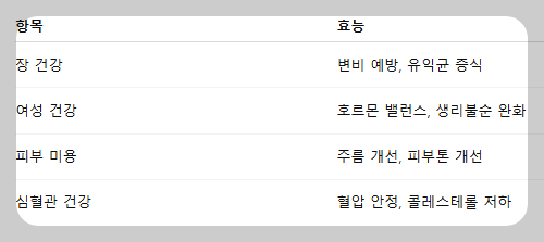 특히 장 건강, 여성 건강, 피부 미용에 탁월해 요즘 웰빙 식단에 빠지지 않고 등장하죠.