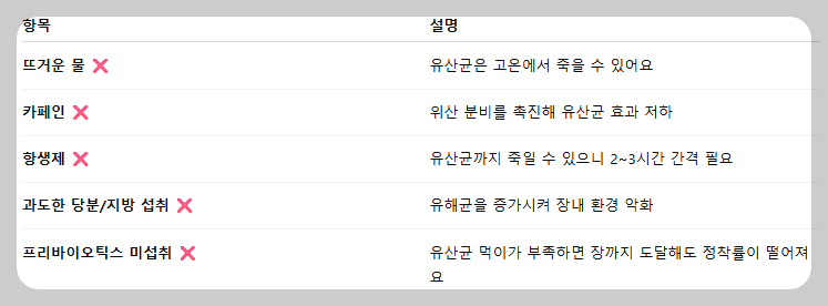 ✅ 유산균 복용법은 단순한 루틴이 아닌 생활 습관의 일부가 되어야 해요!